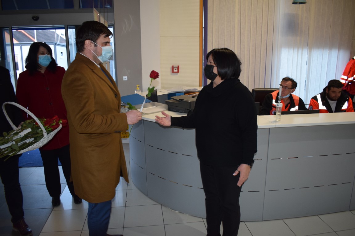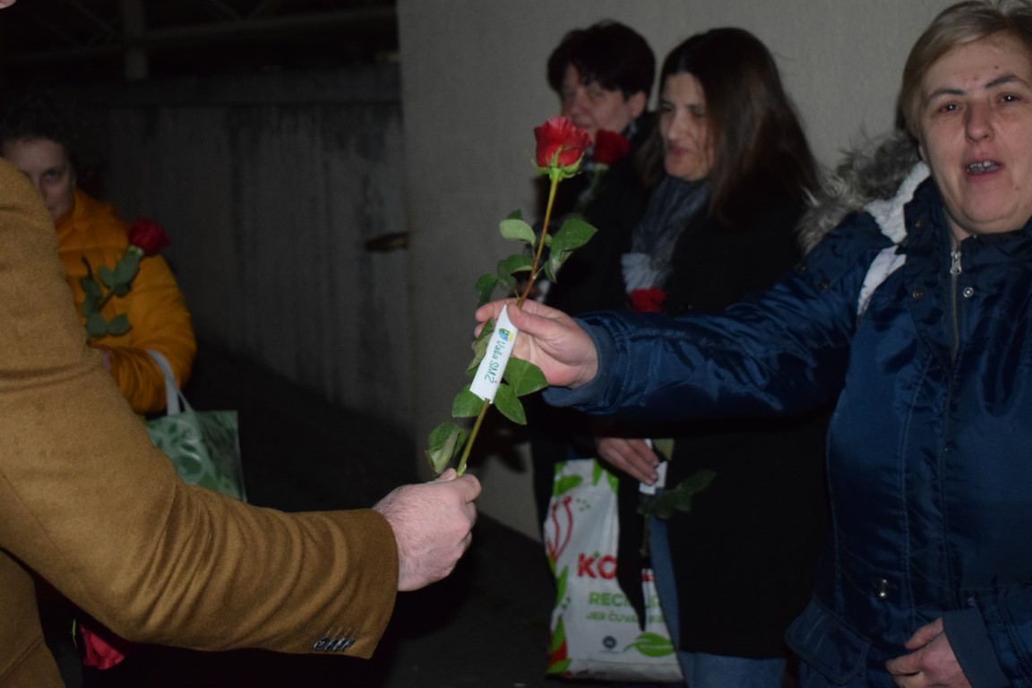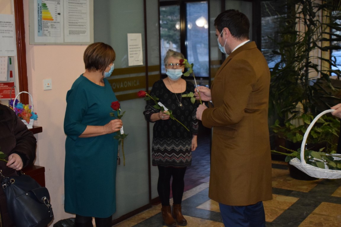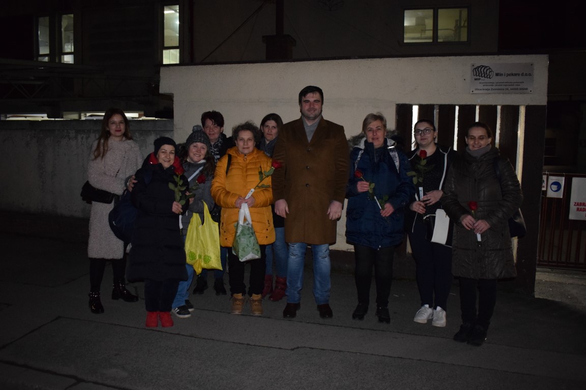 Župan Ivan Celjak noćas je posjetio zaposlenice Mlina i pekara, koje su završile sa smjenom u pogonu te ih u povodu Međunarodnog dana žena darivao ružama.