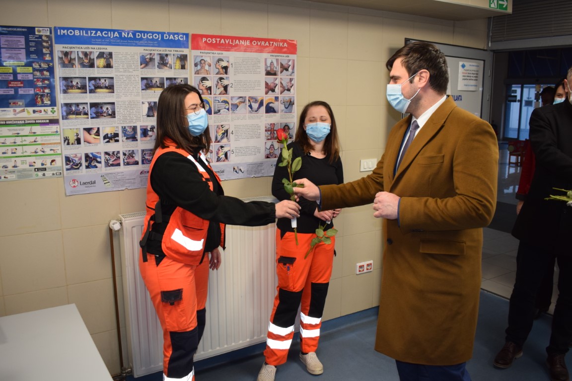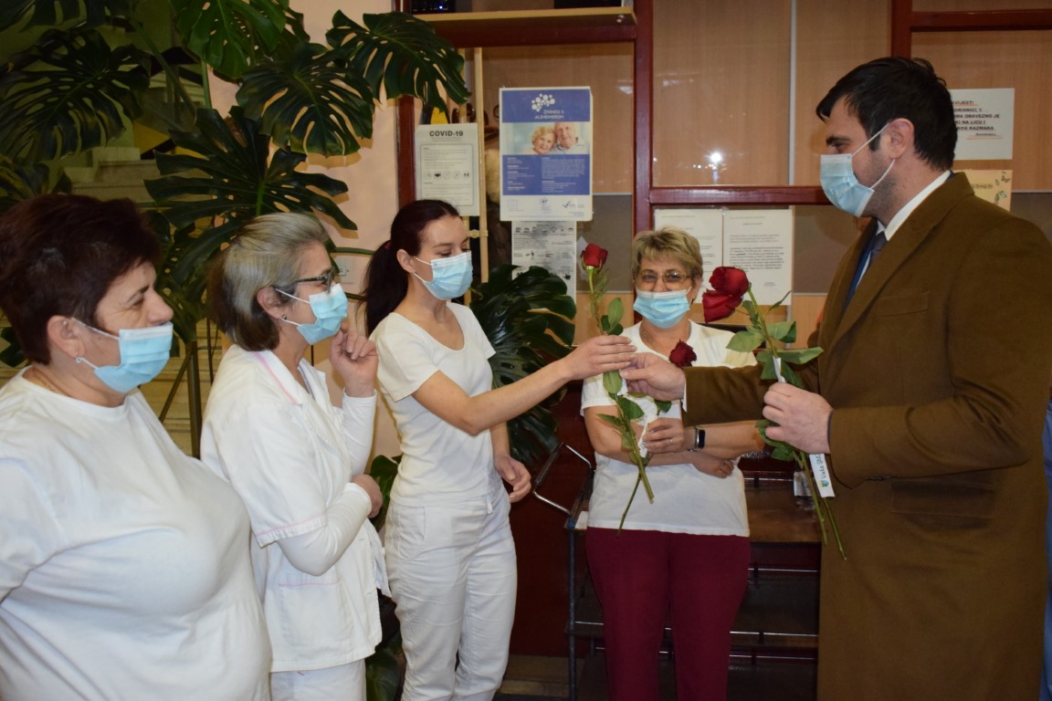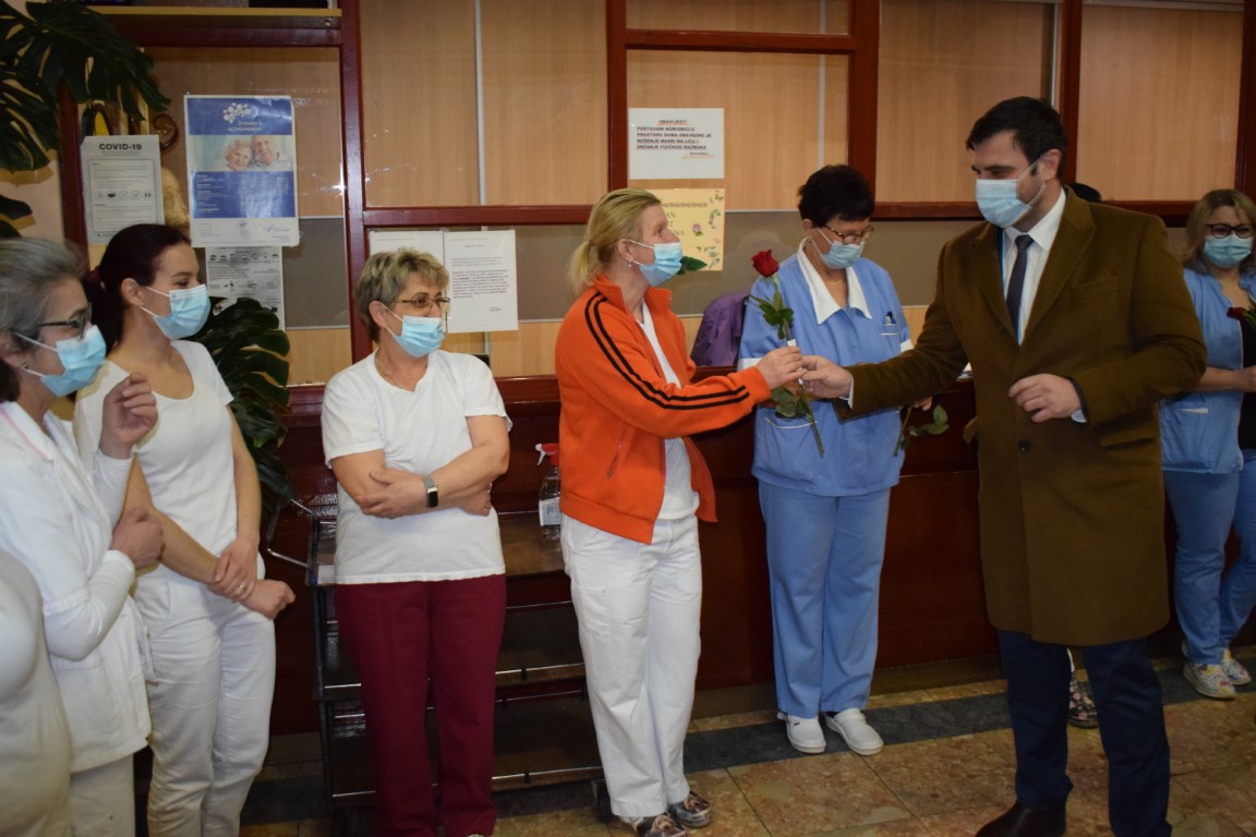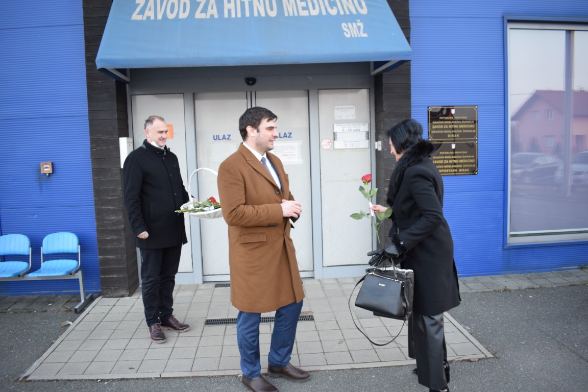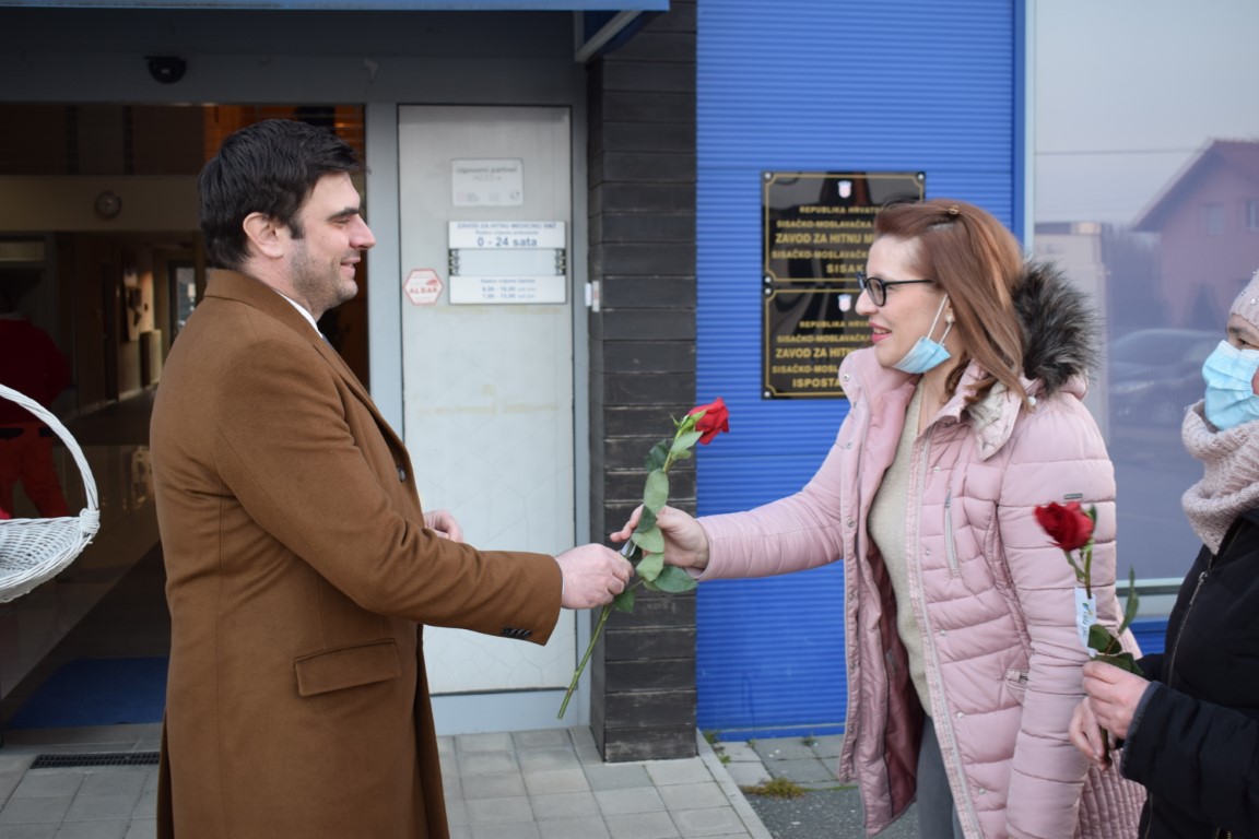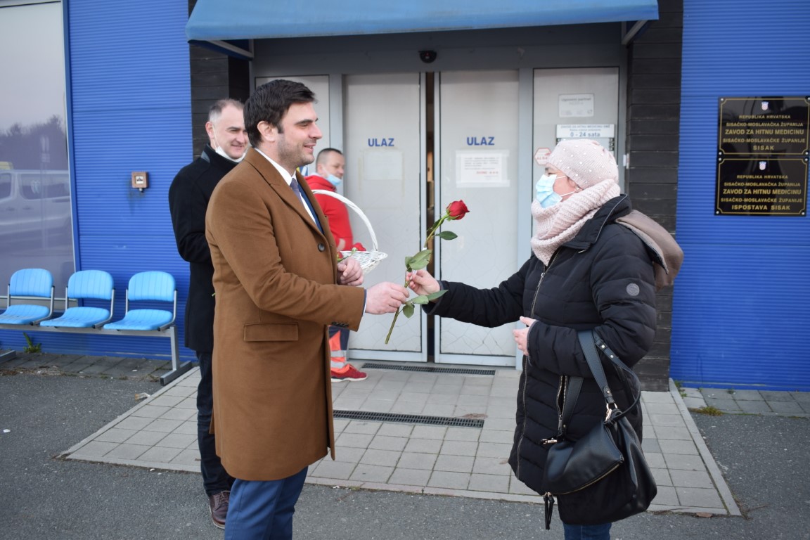 Župan, kojem se pridružio i njegov zamjenik Mihael Jurić, posjetio je i njegovateljice, medicinske sestre i liječnice koje su završile s noćnom smjenom u Domu za starije i nemoćne osobe Sisak te medicinske sestre i liječnice županijskog Zavoda za hitnu medicinu, koje su također noćas radile.