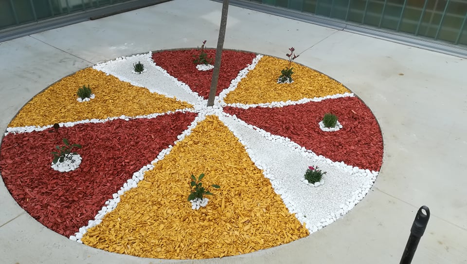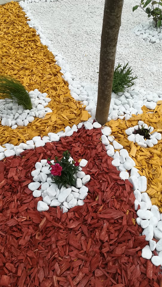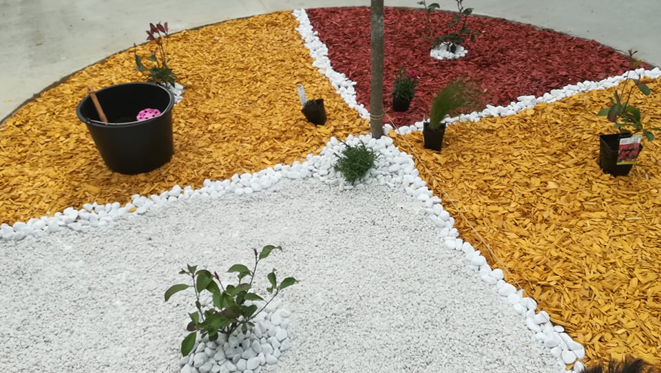 Nakon prekrivanja tla geotekstilom napravljen je plan sadnje biljaka. Koristili su trajnice kojima je upravo sada vrijeme sadnje u vrtove i parkove. Od trajnica su koristili hostu, lavandu, mini karanfile, stipu i fotiniju. Nakon što su posadili biljke, slobodan prostor oko njih dodatno su ukrasili ukrasnim drvenim sječkama i bijelim kamenom sitnije i krupnije granulacije. Malo po malo nastajale su živopisne gredice. Svaka posebna i drugačija. Potrebno je svakako naglasiti da su to radili učenici s teškoćama u razvoju. Osim uređenja atrije, cilj je bio svakako obuhvatiti sva osjetila kao što je vid, njuh, taktilni podražaj.