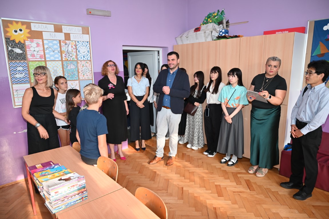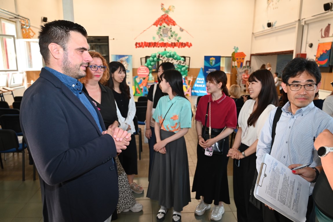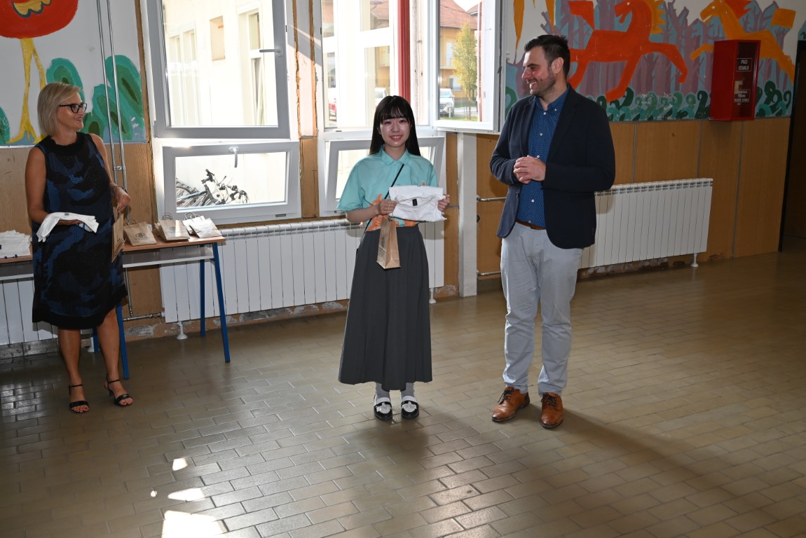 Županu Ivanu Celjaku u današnjem obilasku pridružili su se i gosti iz Japana kojima je ovo drugi posjet Osnovnoj školi Mate Lovraka Petrinja. Profesor Takafumi Nakajima sa studenticama Institute of International Studies Gakushuin Women’s College Tokyo nakon programa dobrodošlice koje su za njih priredili učenici škole, upoznali su učenike s tradicionalnom japanskom radionicom origamija i japanskim pjesmama, a učenici su imali priliku odjenuti i tradicionalnu japansku nošnju yukata.